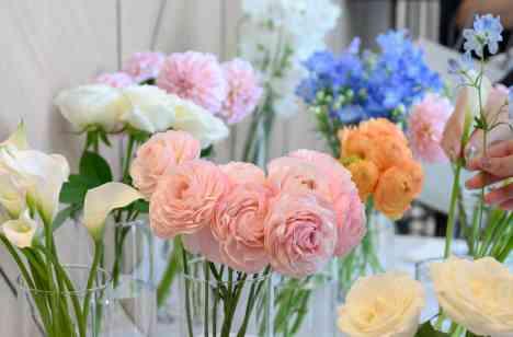 新婦様から「フラワービュッフェをしたい!」とのご希望がありました。ゲストがお好きなお花1輪ずつテーブルの花瓶に飾ってもらいます。ゲストに創りあげてもらうオリジナルのテーブル装飾の完成!披露宴が始まる前からワクワクしますね♪披露宴ではおふたりへのサプライズがたくさん!笑顔溢れる幸せな空間となりました♪