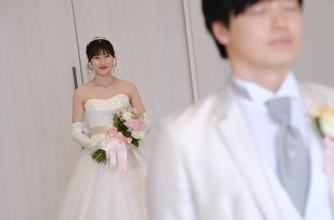 お支度を整え、チャペルにてファーストミートをおこないました。新婦様が肩をとんとんと叩き新郎様が振り向くと、そこには花嫁姿の新婦様が。素敵な姿に思わずうっとりされた新郎様でした。 そして挙式はおふたりにとって大切なゲストの方々に見守られながら人前式をおこないました。立会人のゲストの方々に誓った言葉は今後もずっとおふたりの胸に刻まれることでしょう。