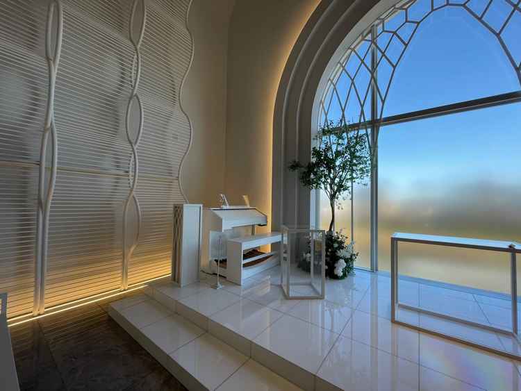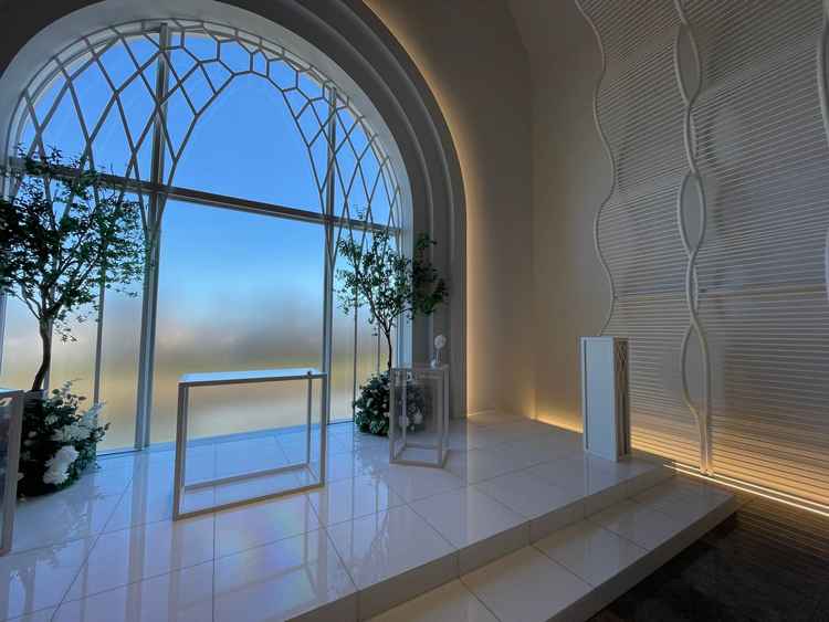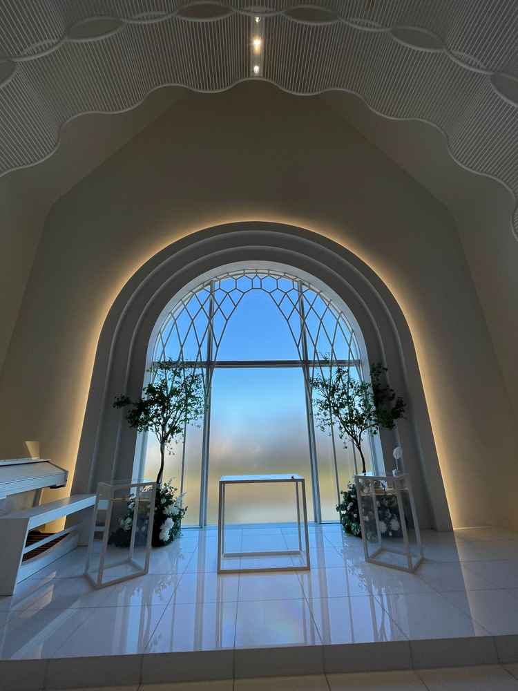 挙式会場は天井が思ったより高く開放感があり白基調の素敵な会場でした。 ほんのりのオレンジライトや常設のお花で雰囲気も好みでした。 エントランスや控室などがシンプル過ぎてしまい私達はあまり好みではありませんでした。