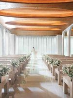 おふたりを祝福するように光が差し込む明るい空間。上質な木目の落ち着いた印象に、緑豊かな10m以上のバージンロードはまるで都心にいることを忘れさせてくれるよう。心通う誓いが叶う期待のチャペルが2025年7月ついにリニューアルオープン。