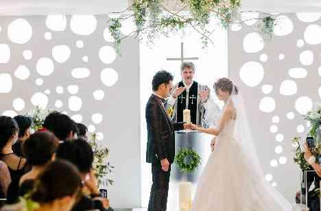 誓いの言葉は牧師から、その他の演出はオリジナルで「教会式×人前式」を行いました。ダーズンローズは全員からお花をいただくために、迎賓中に新郎様が受け取る時間を設けました。フラッグガールやリングボーイ、ジャケットセレモニー。式の後半には、何年経ってもこの特別な日を思い出してほしいという願いを込めて、ユニティーキャンドルセレモニーを。ゲストと一緒につくるとても温かい挙式でした。