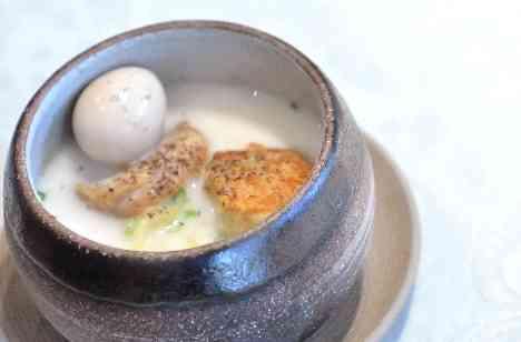 エピソードレシピの最後の「結び」は新郎様×オペラのこの日だけの限定ラーメン!新郎様はラーメン屋さん。シェフ達と一緒に厨房にあがり、心を込めて最後の仕上げを。幼い頃に沢山いただいたゆで卵の思い出もプラスして、皆さまにおもてなししました。他のメニューにはお二人の始まりやプロポーズなど記念日の思い出が込められ、今日までのお二人の日々を物語にしたようなレシピになりました。