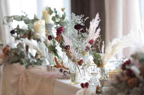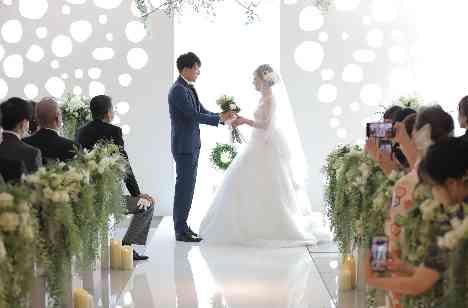 各テーブルには楽しそうなおふたりの写真を飾り、ゲストをご招待。セピア色の写真とドライフラワーのコーデがおしゃれな演出に。フォトラウンドではゲストとの時間を大切に、テーブル対抗戦の食べ比べゲームではおふたりも一緒に盛り上がりました。新郎様から新婦様へ歌のプレゼントも新郎様の楽しく歌う姿に会場中が笑顔に♪中座ではサプライズでご家族をお呼びして、ご家族との時間も大切にされました。