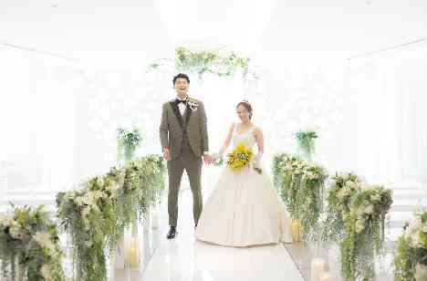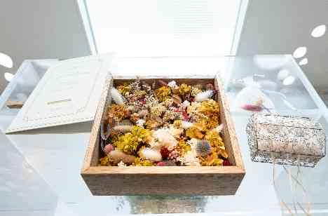 透明感のあるレースビスチェと艶やかな光沢が印象的なドレス。純白のチャペルがより美しく魅き立てます。お二人が結婚証明書として選んだのは「フラワーボックス」。ゲスト全員にドライフラワーを挿し入れていただき、挙式で仕上げとお披露目。ボックスの後ろにはゲストのお名前が彫刻されており、一生の宝物がまた一つ増えました。