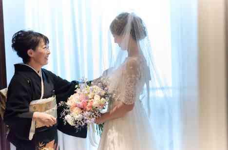 お母様とのベールダウンは挙式直前に新婦お父様と新郎様が見守る中で、そっと静かに。優しい時間がお二人をあたたかなセレモニーへと導きます。誓いの言葉、指輪交換の大切なシーンはゲストの皆様にお手伝いただき、一緒につくる唯一無二のお二人の挙式に。たくさんの大好きな笑顔と祝福の拍手の中で、門出のときを迎えます。