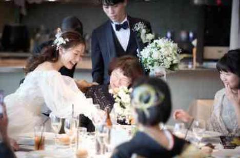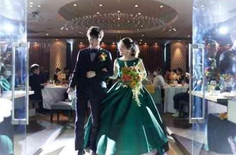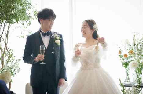 紫陽花、ダリア、レースフラワーのホワイト装花が個性豊かに華やぐナチュラルエレガントなパーティ会場。自由度高く楽しむパーティは、サプライズやワクワク感あふれる演出で会場いっぱいにたくさんの歓声が。より距離近く、寛ぎの工夫を凝らしたパンサーブのおもてなしはリラックスしたいつもの笑顔を導きます。深みグリーンのサテンドレスと鮮やかなブーケのお色直しのご入場はさらに期待高まる夢の世界の演出に。