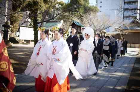お二人が選ばれた誓いのカタチは神前式。名古屋城ゆかりの古社「那古野神社」で清美な誓いを立てられました。斎主・巫女の先導のもと、本殿へ歩まれる皆様をあたたかな陽光が包み込む早春の頃、ご家族とご親族に見守られながら大切な儀式を執り行うお二人はとても穏やかで至福に満ちた表情に。優美な情景が舞う白無垢と凜とした袴姿もとても素敵です。
