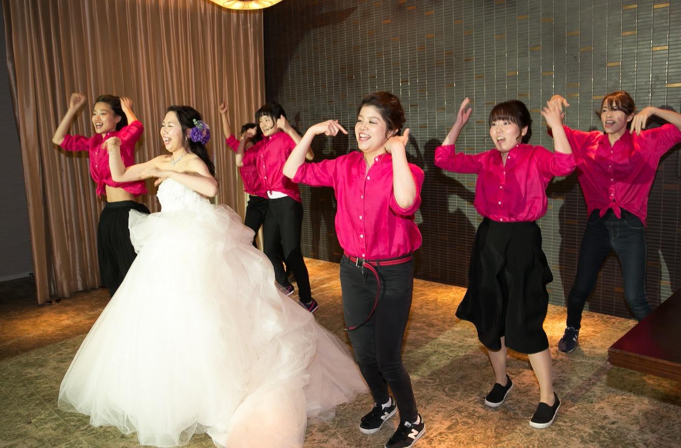 ダンス部だった新婦様。そのお仲間と一緒にダンスをご披露!ご友人の中にダンスのプロの方もおみえで、いつものお仲間とかっこいいダンスを皆様で披露されました。ダンスの最後にはサプライズで、旦那様への愛のメッセージをお伝えに♪