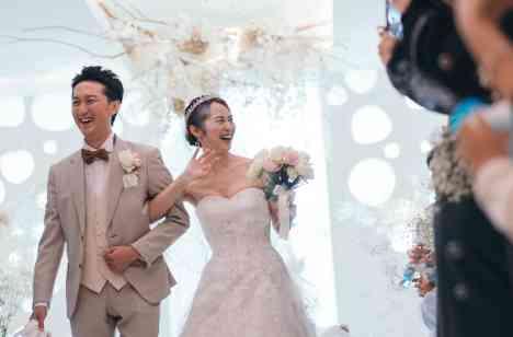 至福の表情であゆむ新婦様はお父様に導かれて、新郎様のもとへ。ゲストの皆様のサイン入りのウェディングフォトは、幸せと祝福が飛び出しそうな楽しさと絆を感じる結婚証明書に。バブルシャワーのきらめきと大好きな笑顔に包まれて門出のときを迎えられます。セレモニーのフィナーレには、新婦様からブーケプルズで楽しく幸せをシェアされました。