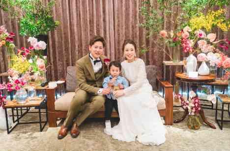 石垣島での家族三人のセレモニー後、改めて大切な皆様とともに幸せを分かち合い、感謝をお伝えする門出のお披露目パーティ。大人も子供も楽しむことができるようエピソードレシピ付きのコース料理やサプライズ演出などの工夫を凝らして楽しさに満ちた一日を。愛息子様と迎えた親子三人のウェディングパーティをご紹介します。