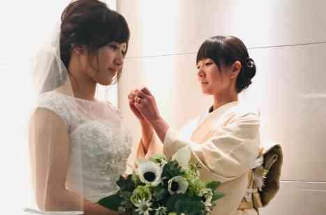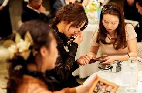 ゲストと和んだ温かい雰囲気の中での挙式の希望があり、パーティの後に行いました。新婦様の入場シーンでは大好きな兄弟姉妹からブーケをもらい、アクセサリーをつけてもらい、お母様からのベールダウン。最後の花嫁支度を整えてもらいました。 お2人の決意とゲストからの祝宴を目に見えるカタチにしたかったので、誓いの言葉とパーティで集めた写真、内緒で書いていただいた親御様からのお手紙を一冊のアルバムにしました。