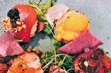 料理ではお2人の思い出を表現。 入籍記念日に訪れたお寿司屋さん。そこで食べた忘れられない味をまるく可愛らしい手こね寿司に再現。マグロや雲丹、サーモンやいくらとふんだんに使った高級食材の手こね寿司と、新婦様の思い出の大分県で召し上がった馬刺しをリースにして盛り付けました。お米は兵庫県に住む新郎お祖父様が丹精込めて育てられたお米を使用しました。