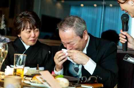 幼い頃に、新婦様が好きで残していた赤いウィンナーをお父様が食べてしまった…そんな家族の思い出がありました。お父様は覚えてないかも?と話しながら、当日はサプライズでお肉料理に赤いウィンナーを添えてご用意。その一皿が運ばれてきた瞬間、あっ!と驚き、そして大粒の涙を流されたお父様。司会者が「覚えてますか?」と質問しても、頷くことが精一杯。会場中がそんな温かな新婦家族の思い出に触れ和やかな時間となりました
