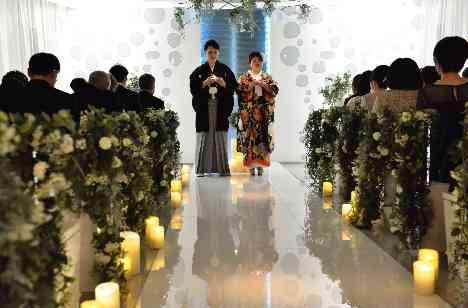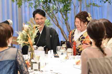 ゲストが暖簾をくぐり家に来てもらうイメージでお二人が待つ会場へ迎賓。お二人を知っていただく為に生い立ちムービーを最初に流しました。家で話してるようにお二人の席にもテーブルを作って歓談しやすい空間に。オリジナルの年末ジャンボ宝くじも盛り上がりました。ケーキはお母様からのラストバイトとお二人のファーストバイトの両方をお披露目。中座はお二人弟様とするなどゲストひとりひとりとの思い出作りもできました。