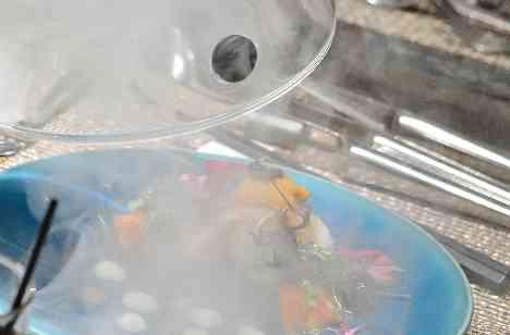 メニュー表には『お二人の~』『思い出の母の味』などすべてのレシピにこれは何?!と聴きたくなるようなフレーズが。お二人は思い出や感謝をエピソードレシピにのせておもてなししました。瞬間燻製の料理演出では驚きや感動の声が!この日だけのエピソードレシピと料理演出は「こんなの初めて!」の素敵なおもてなしになりました。