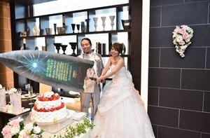 お二人の夢であった大剣でのケーキ入刀。 今までにない入刀にゲストの方も大興奮でしたね♪ お二人の念願が叶った瞬間です(*^_^*)