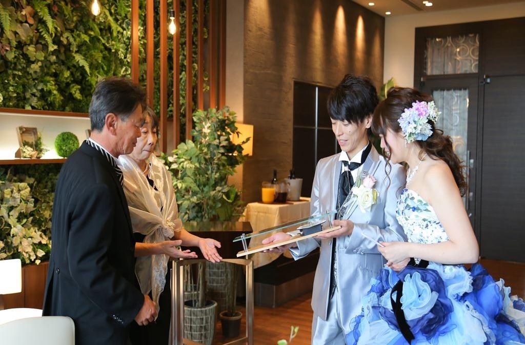 もともとはご家族のみの挙式だけを希望されていたお二人。 ただ打ち合わせを重ねていくうちに親御様もお呼びすることになり、リニューアルしたてのロビーでご会食をされることになりました。 こんな機会しかないからとカラードレスでお色直しもおやりになることとなり、今から当日が楽しみと和やかな雰囲気で打ち合わせはが進みました。