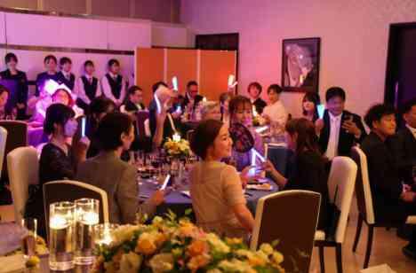 明るく楽しいことが大好きな新郎新婦様。ゲストに楽しんでもらいたいおふたりは、明るく楽しい空間で入場をすることに☆ゲストの皆様にもご協力いただきスタンバイ!もちろん新郎新婦様もペンライトを持ち、ノリノリのBGMに合わせご入場されました。ノリノリなおふたりを見てゲストは予想以上の盛り上がりとなりました☆!