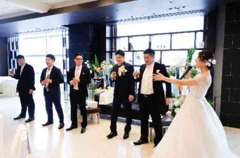 披露宴の後半では、新郎新婦様がマイクを持ってゲーム大会を開催!○×クイズが用意され「新郎が小学校の運動会で得意だったのはかけっこである」「新婦の小さい頃の夢はケーキ屋である」など、幼い頃からおふたりを知っている皆様だからこそ楽しいクイズが♡「ゲストも含めた5人の中で、1番早く炭酸を飲み干すことができるのは新郎様である」といった答えがその場でわかるユニークな問題もあり、大変盛り上がった様子でした!