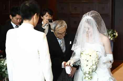 挙式では大切なお父様と一緒にバージンロードを歩まれた恵利子さん とても緊張をされていたかと思いますが、入場扉が開いた瞬間にお父様と腕を組んで嬉しそうな笑顔が見れました♪ バージンロードは花嫁様が生まれてから新郎様に出会う道のりを表しています お父様が憲幸さんの元へお嬢様の背中を押してさしあげる姿がとても感動的でございました