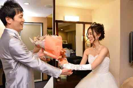 結婚式が結んだ後にブライズルームにて新郎様からのサプライズが! 新郎様からサプライズをされたことがなかった新婦様は突然のことにとてもびっくり!! 新郎様は緊張されているかと思いきや、ユーモアたっぷりにピンクの花束を渡されておりました♡ 結婚式という特別な日のサプライズで、おふたりにとって忘れられない時間がまたひとつ増えました♡