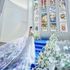 - ステンドグラスとブルーのバージンロードが人気の式場