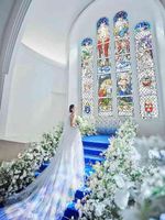 英国の教会から譲り受けたステンドグラスとロイヤルブルーのバージンロードを継承し、新たに「光」をテーマにしたチャペルに生まれ変わりました。グランドハープとチェロの音色が響き渡り、ふたりのこれからの未来を祝福するかのような温かみ感じる感動挙式をお過ごしください。