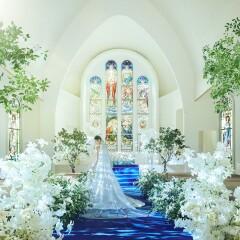 【憧れの挙式料全額無料(36万円相当)】光に導かれるロイヤルブルーのバージンロード。洗練された大聖堂で感謝を伝えるセレモニーを体感し、挙式後は大切なゲストに囲まれて大階段でフラワーシャワーも。