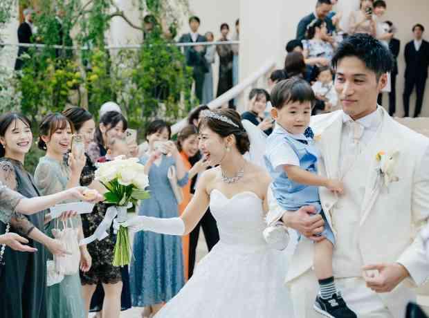 2歳の息子さんが楽しんで参加できるよう、会場内にキッズスペースを設置。そのため会場全体が終始アットホームな空間となりました。ゲストの皆さんからも「涙あり笑いありでもう最高!」「最高すぎてこの後自分の結婚式を全部一から練り直したい」「来週結婚式の見学に行くことにした」「料理本当に美味しすぎた」などのお声が届き、ご満足されている様子が伝わってきました。