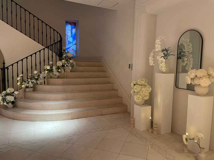 チャペルは圧巻の美しさで、新郎新婦が一段高い位置にくるように設計されているのでゲスト全員が見やすい。
