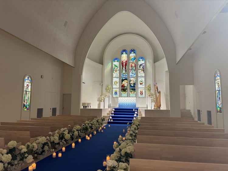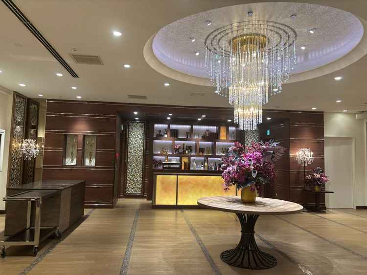 挙式会場は天井高に白い壁で綺麗でしたが、少しシンプルすぎるかなという印象でした。プロジェクターを使い、白い壁に映像を投影できる点はこの挙式会場ならではだと思います。 披露宴会場は4つほど種類があり、カジュアルからラグジュアリーの雰囲気のものがありました。ラグジュアリー系のものが気にいり、シャンデリアもとてもきれいでした。規模的には50-80人くらいがちょうど良いのかなと思いました。