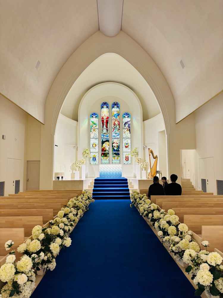 チャペルに小さい子どもの避難部屋があったのがとても印象的でした。 小学生未満が4名出席予定のため、会場に段差がないのもポイントが高かったです。
