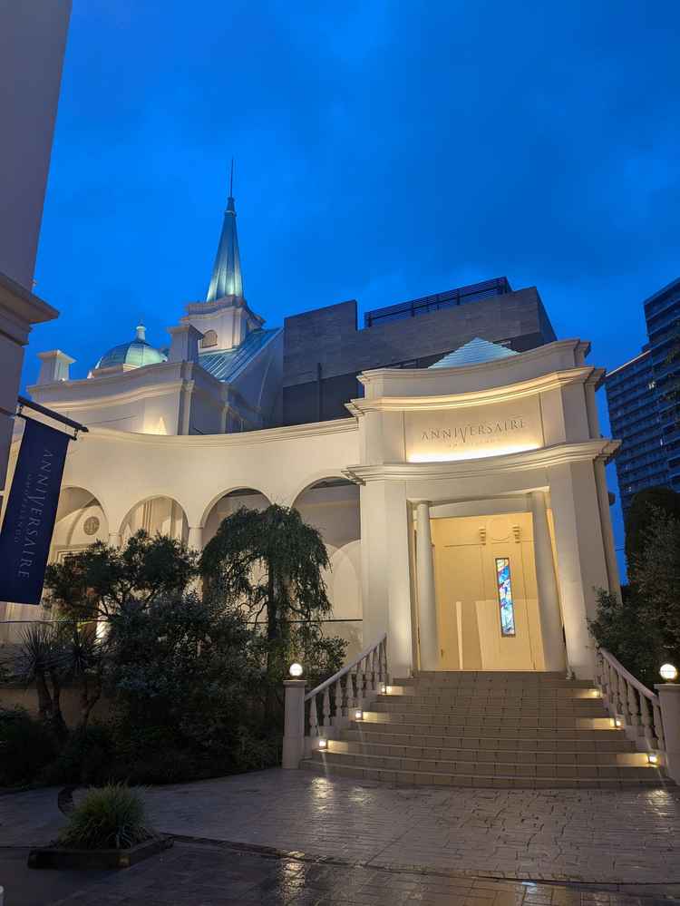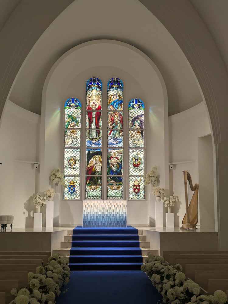 青いバージンロードが特徴的なチャペル すばらしい | アニヴェルセル 表参道