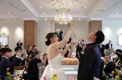 お互いの思い出のアイテムでもある『バウムクーヘン』を使用してのファーストバイトセレモニーを絶対にやりたい!というこだわりを叶えていただけるようにご相談。丸々一本を贅沢に使用したセレモニーはお2人らしさをゲストへ感じていただくとともに2人の思い出を紹介するお時間に。愛情の大きさだけお相手に食べさせてあげるファーストバイトセレモニーもお口に入りきらないほど大きなサイズをプレゼントしてもらいました。