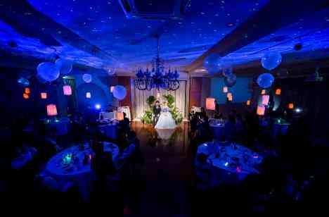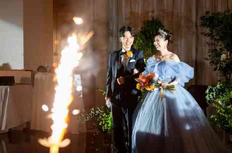 改めて和装⇒洋装へお着替えされたお2人が入場したシーンでは、大人気演出の1つである【バルーンランタンセレモニー】を実施。会場の天井へ映し出される星空演出と合わせて行うことで、大好きなプリンセスに世界観に入り込んだような空間に。静かに浮かぶランタンにゲストも感動。その後の結びのセレモニーへつながる感動的な時間になりました。