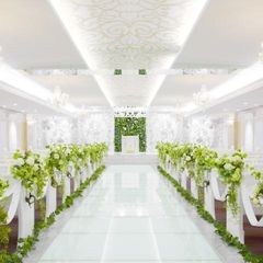 【憧れが叶うチャペル】夢を叶える白のチャペルで入場体験♪ラ・ボア・ラクテならではの光り輝くバージンロードに思わず息をのむお客様も!一生に一度の誓いの時をロマンチックに過ごせます☆