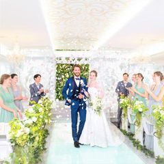 【憧れが叶うチャペル】夢を叶える白のチャペルで入場体験♪ラ・ボア・ラクテならではの光り輝くバージンロードに思わず息をのむお客様も!一生に一度の誓いの時をロマンチックに過ごせます☆