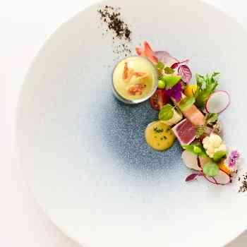 列席したゲスト全員に喜んで欲しい。シェフのその想いから作られた料理は、和の味わいも感じる優しいフレンチ。旬の食材を使い、見た目にもこだわった一品。フェアでその味をチェックして!(2万円相当・無料)