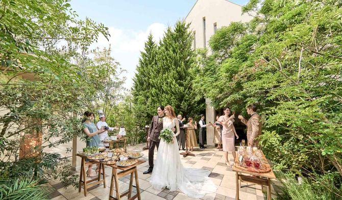 豊かな緑に囲まれたガーデンや、ナチュラルに彩られた邸宅をすべて貸切にしてウエディングが楽しめるのが最大の魅力。ふたりも招かれたゲストも、自然体で過ごせるプライベートパーティがかなうのがうれしい。また、ガーデン挙式やペットと過ごす結婚式も可能。