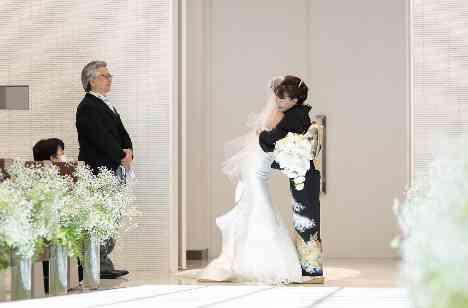 アルカンシエルのチャペルでは光の演出でより一層感動的なご入場シーンを迎える事ができ、ゲストの皆様からも歓声があがります。 さらに、ご家族の愛情を感じるご入場シーンとなったのは、ベールダウンののちに、お母様からのハグ。 これまでの準備期間の大変さを感じた日々を包み込むように、お母様から「幸せになってね」と聞こえてきます。