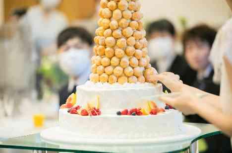 ウエディングケーキは3段くらいのケーキをご覧になることが多いのではないでしょうか。おふたりは、シュークリームのシュークロカンタワーをお選びになりました。子孫繫栄を願う気持ちも込めて、皆さんへ幸せのおすそ分けを☆パティシエとオリジナルで作成いただくことももちろん可能ですので、お気軽にご相談くださいね。