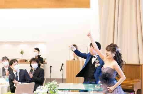 披露宴会場が4つあり、光る階段やらせん階段からしっとりと感動的なご入場をされるのも素敵ですよね。こちらのおふたりは、”ファーストダンス”をされてのご入場でした。ファーストダンスは、ふたりのこれからの人生の第一歩を表しています。皆さんも手拍子で盛り上げて一体感もでましたね!素敵なご入場シーンとなりました。