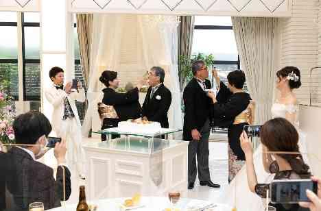 ご家族も楽しみにされていたご結婚式。延期となって悲しいお気持ちだったのはご家族も同じです。 お父様から新郎様へのバトンタッチの際には、お父様の温かな眼差しが。新婦様も見つめ返し、「これから幸せになるんだよ」「いよいよ新生活のスタートだね」と、温かなお気持ちを感じられる素敵なワンシーンとなりました。