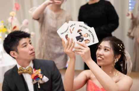 ゲストとの時間はゆったりと楽しんでもらえるような時間にしたいとフォトタイムをご用意♪ ポーズカードを使用して、たくさんのバリエーションの写真をゲストの皆さんと盛り上がりながら撮影しました。 写真はあとからでも見返すことができるので、たくさん撮りたいと考えていたお二人にはぴったりの演出となりました。