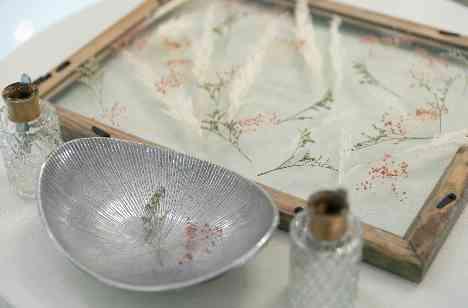 お二人こだわりのドライフラワーを用いた結婚賛同書。 ご新居にも飾ることができるようにご用意されました。 貸切でお過ごしいただくご両家専用の受付では、ゲストの皆様にも一輪ずつ、ドライフラワーを選んでいただき、大切な結婚証明書が完成。おふたりの大切な、色あせることのない宝物がまたひとつ、増えましたね。