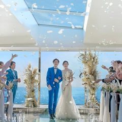 【当館人気No.1*絶景チャペルで挙式体験】180度広がる海と空のデザイナーズチャペルがゲストがゲストも息をのむ美しさ。貸切テラスでウェルカムパーティーやバルーン演出も【1件目限定特典*挙式料20万】