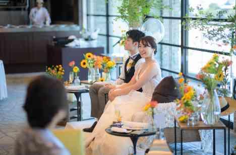 お料理は、地元食材を使ったこだわりのお料理をオープンキッチンよりおもてなし。デザートは、見えた目も華やかで動きのあるデザートブッフェ演出に、ゲストも皆笑顔になりました。また新郎新婦の席はメインテーブルをあえて設けずソファ席に。歓談の時間を多く設け、ゲストに自由にチェキ撮影を行ってもらったりと、新郎新婦とゲストの距離が近く、おもてなしを中心にゆったりと過ごしました。