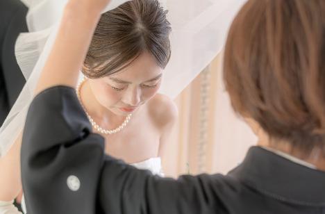 感動的なベールダウンと祖父との入場