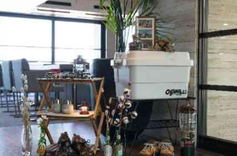 新郎新婦の席はアウトドアチェアやランタン、装花での装飾、ゲスト卓には焚火をイメージし薪を装飾したりと、キャンプがお好きなおふたりならではコーディネート。キャンプ雑誌をモチーフとしたプロフィールブックやオープニング映像で、おふたりのパーティーのテーマである”Make In Chill”を表現。また乾杯は、缶ビールと缶ジュースで缶杯、とことんキャンプの温かい雰囲気の中、みんな笑顔でパーティースタート。