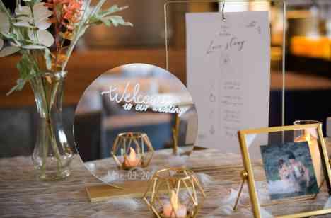 装飾にもこだわり、おふたりの写真やウェルカムボード、センスの良い装飾で会場に足を踏み入れた途端、おふたりの雰囲気でいっぱいに。 ゲストの待合でもウェディングツリーを取り入れ、飽きさせない工夫が盛り沢山。前撮りの写真を自由に見ていただいたり、手作りのプロフィールブック、生花でのアーチの装飾は、会場を華やかにさせました。
